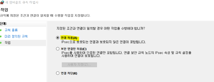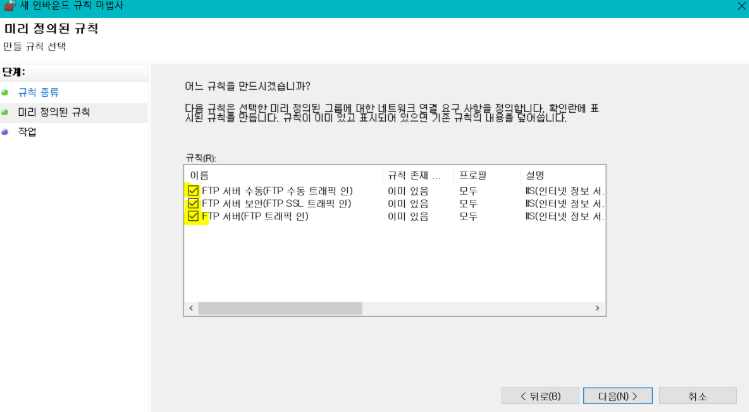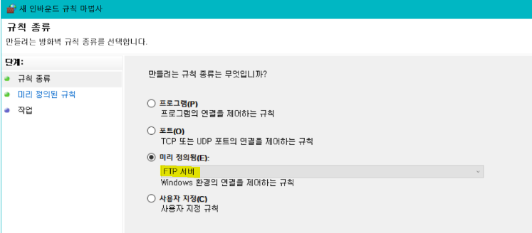 3) 규칙 종류 : 미리 정의됨 → FTP 서버