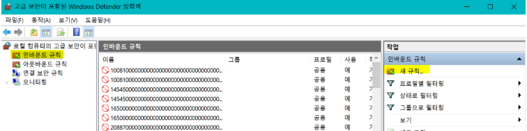 2) 왼쪽의 "인바운드 규칙" 을 선택하고 오른쪽의 [새 규칙...] 클릭