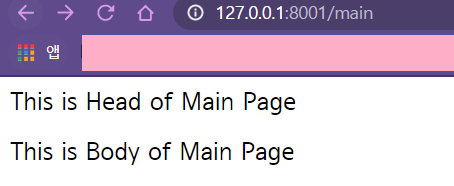 그리고 검색창에 http://127.0.0.1:8001/main 을 검색하면 다음과같이 나오는 것을 볼 수 있다.