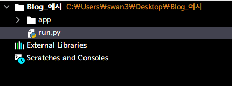[Project Name] └ [app] └ [static] └ 자바스크립트, CSS, 이미지 등... └ [templates] └ HTML 파일들(폴더별로 정리 가능) └ run.py |