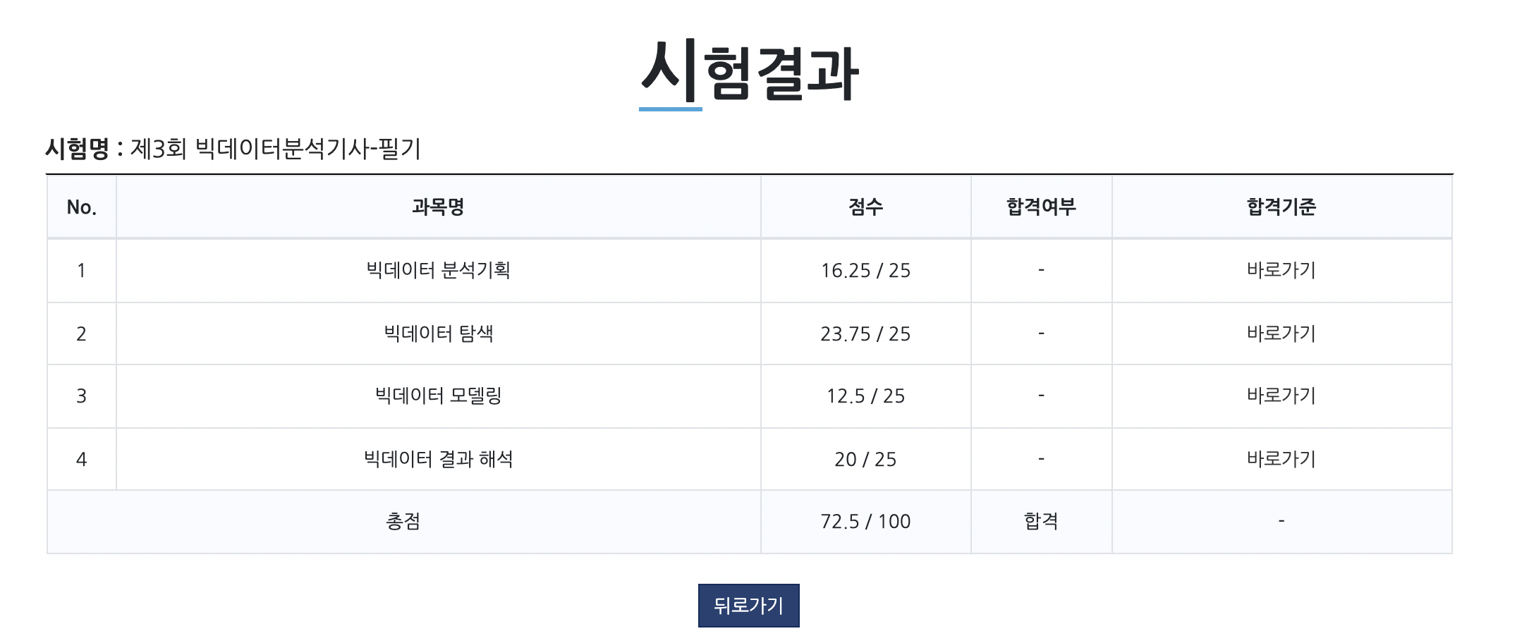생각보다 가장 자신있다고 생각했던 3과목에서 모르는 내용들이 많아서 당황했지만,, 다행히 결과는 합격이었습니다! ㅎㅎ