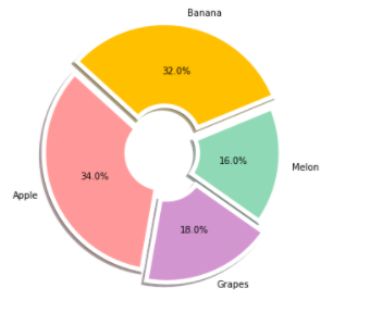 explode = [0,10,0,10] : Banana와 Grapes만 중심에서 10만큼 벗어나게(explode)